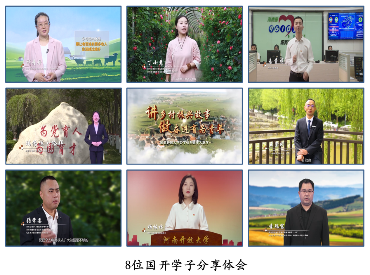 八位国开学子,分享了自己在各自不同领域的,为脱贫致富所做出的努力与建树。