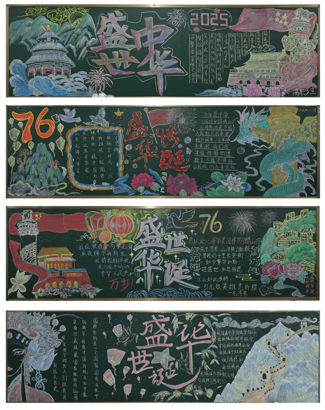 在系部统一部署下,各班级高度重视,师生们凝心聚力,精心设计板报内容。从国旗、天安门等象征元素到红色经典语句,从历史记忆到当下成就,处处体现出同学们对祖国的深情祝福。整个过程不仅展现了学生的艺术才华,也彰显了同学们团结协作、奋发向上的精神风貌。