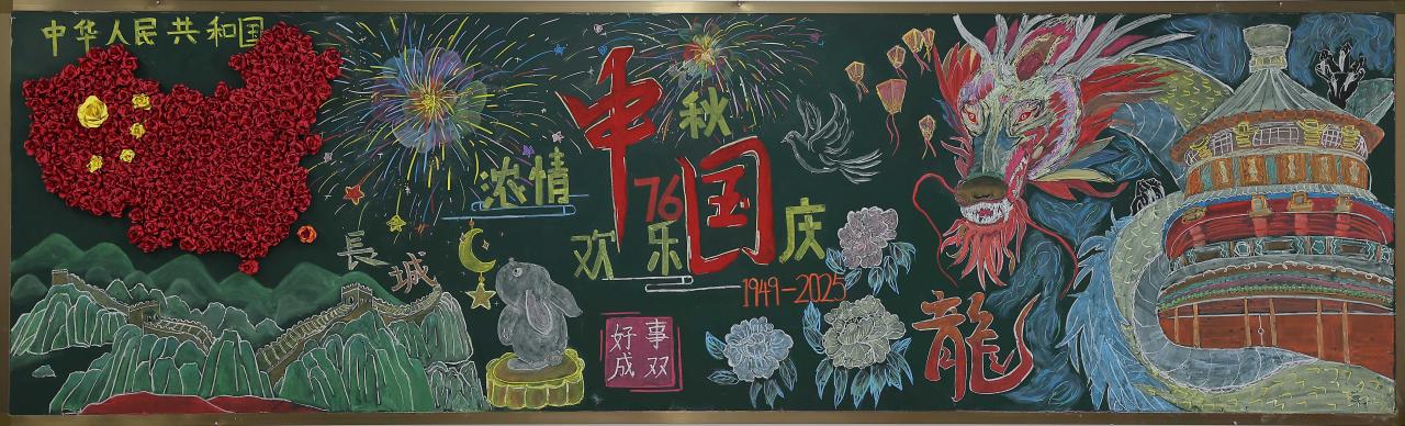 为进一步营造喜迎国庆的浓厚氛围,激发学生的爱国热情,商贸信息系于9月26日至9月29日举办了“庆国庆”主题黑板报活动。活动旨在通过学生们的创意与笔触,弘扬爱国主义精神,增强集体荣誉感和凝聚力,让青年学子在浓烈的节日气氛中接受思想洗礼。