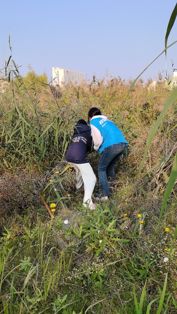 眼下正值 “加拿大一枝黄花” 盛花期,也是清除的关键时期。由于其根系发达、繁育能力极强,机械清除易残留根系,人工连根拔起成为最彻底的整治方式。讲解结束后,师生们迅速戴上手套,手持小铲分工协作:有的弯腰仔细辨认植株,避免误除本土植物;有的双手紧握花茎底部,发力将整株植物连带根系拔出;还有的将清理后的 “加拿大一枝黄花” 集中装袋,防止种子散落二次传播。阳光下,大家的额角渗出汗水,却丝毫没有放慢手中的动作,默契的配合、认真的神情,成为校园里一道践行劳动精神的亮丽风景线。