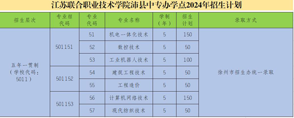 江苏联合职业技术学院沛县中专办学点 五年高职招生指南